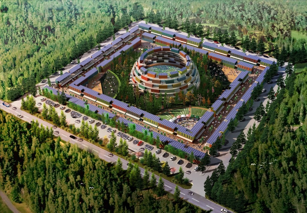 Créé à partir de 486 containers recyclés, la ruche se caractérise par deux couches interne et externe (semblable à une ruche, d’où le nom) qui offrent aux résidents une expérience plutôt unique d’habitation verte. Le centre de la RUCHE sera la pièce maîtresse avec un toit ouvert, les éléments d’eau (avec chute d’eau) organiques, jardins publics et  verger.